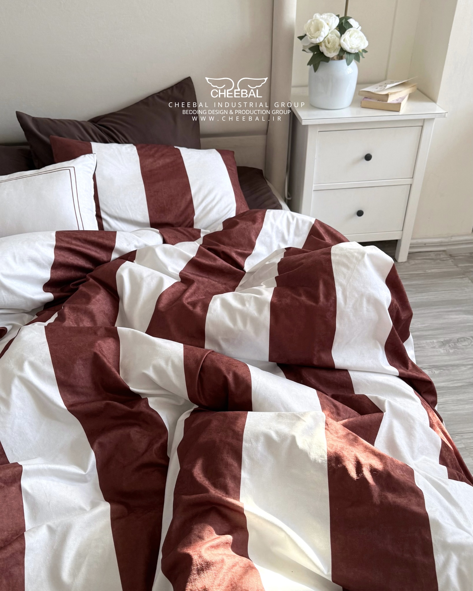 روتختی دونفره یک و نیم نفره و تکنفره چیبال طرح راه راه درشت رنگ قهوه ای ساده